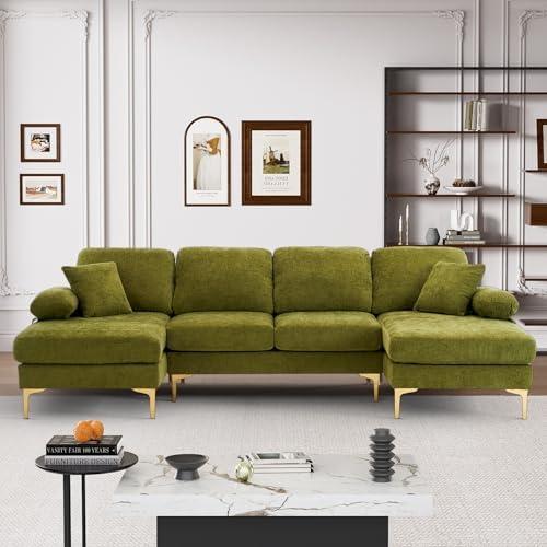 This modular sectional features a generous size of 94.5 inches, offering deep seating wrapped in soft chenille fabric. The dual-layer cushioning, infused with memory foam and doll cotton, provides excellent comfort for lounging or napping. Its sturdy construction includes S-shaped springs and a solid wood frame, allowing it to support up to 760 lbs. Removable and washable cushion covers add a layer of convenience, while the moveable ottoman serves multiple purposes—from a footrest to additional seating—making this sofa adaptable for varying room layouts and routines.