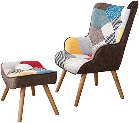 This vibrant accent chair and its matching ottoman feature a unique patchwork design that adds a touch of creativity to any room. The thick cushion, made from high-density sponge and soft linen fabric, ensures maximum comfort, whether you’re reading a book or napping. Its ergonomic shape supports your head and neck, creating a more relaxing experience. The solid wood legs provide durability and stability, while anti-scratch pads protect your flooring from damage. With easy assembly and a stylish splicing design, this chair set makes for an eye-catching decor piece.