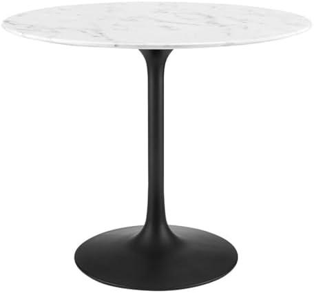 Modway Lippa Mid-Century Modern 36″ Round Artificial Marble Dining Table in Black White