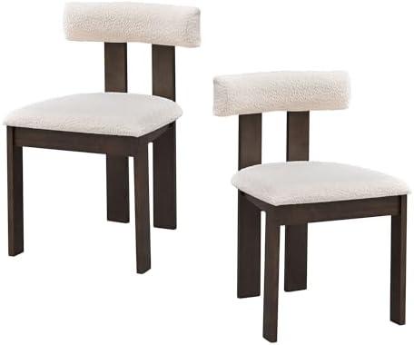 These elegantly designed chairs bring a mid-century modern flair to your dining or living space. Crafted with solid rubber wood, their sturdy construction ensures they can support up to 300 lbs, making them not only stylish but also reliable for everyday use. The boucle upholstery adds a touch of sophistication while providing a comfortable seating experience, thanks to the soft backrest and cushion, which help promote good posture and minimize back pain during prolonged use. With overall dimensions of 20.08” W x 20.08” D x 31.1” H, they fit seamlessly into various room settings, whether for family meals or casual gatherings.