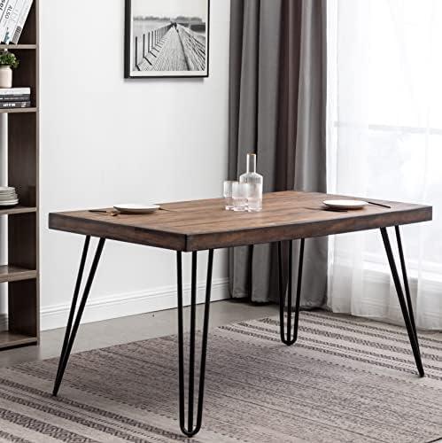 Roundhill Furniture Aryven Industrial Metal Hairpin Design Dining Table, Rustic Dark Pine