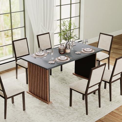 This beautifully designed wooden table offers a generous space of 70.86″ W x 35.43″ D, capable of comfortably seating 6 to 8 people, perfect for family gatherings or dinner parties. The walnut finish combined with a minimalist style provides a contemporary look that can easily enhance the aesthetic of any dining area. Its sturdy construction, featuring heavy-duty metal legs and a thick MDF tabletop, ensures durability and stability, supporting up to 330 lbs. The adjustable foot pads further ensure it stays level on uneven surfaces, making it functional in various settings.