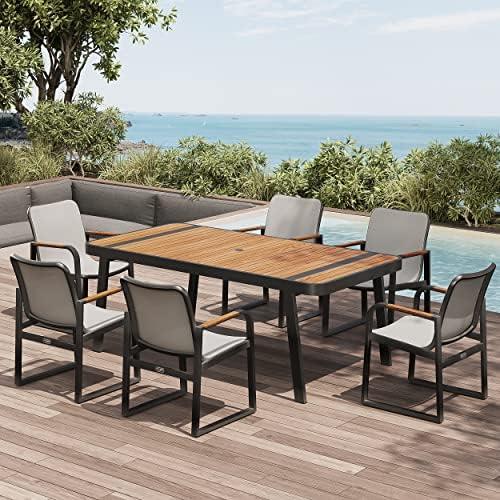 Stylish 7-Piece Outdoor Dining Set with Teak Wood and Aluminum Frame