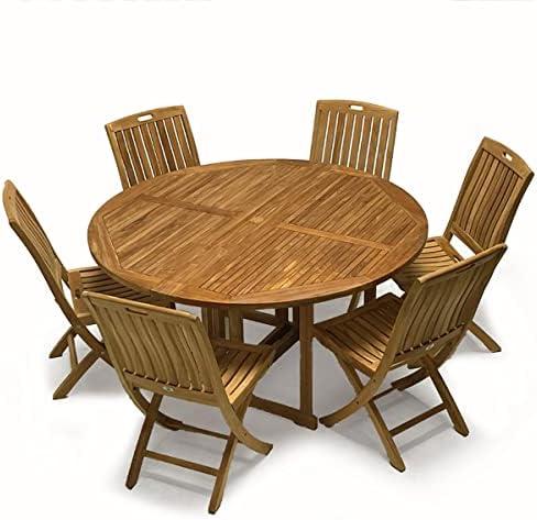 Crafted from Indonesian Grade A teak, this outdoor dining ensemble features a 59″ round folding table and six matching folding side chairs. The kiln-dried teak wood is not only revered for its robust durability but also for its natural resistance to various weather elements, ensuring longevity even in contrasting climates. The folding design of both the table and chairs maximizes convenience, allowing for easy storage and setup, making this set ideal for intimate dinners or larger gatherings. Furthermore, the marine-grade stainless steel hardware enhances its resistance to rust, ensuring that your investment can withstand the test of time.