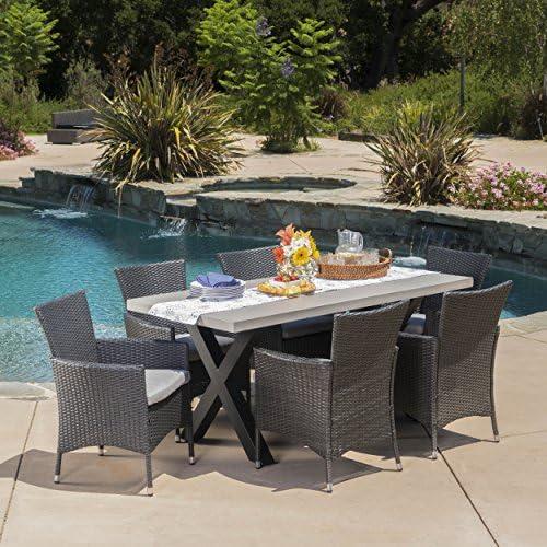 While this set boasts many advantages, it’s essential to consider some potential drawbacks. Pros include its stylish lattice weave design, ergonomic seating for enhanced comfort, and a lightweight structure that makes movement around your patio or garden effortless. However, the requirement for assembly may deter some consumers, and the cushions, while provided, could require additional maintenance depending on environmental exposure. Ultimately, this outdoor dining set represents a beautiful combination of functionality and style, making it a functional addition to any outdoor area.