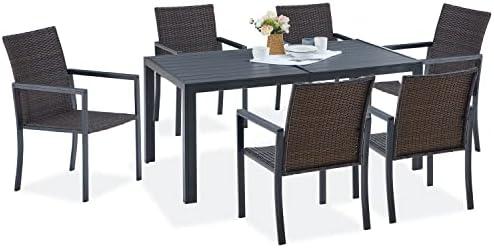 Spacious Outdoor Dining Set with Wicker Chairs for 6 People