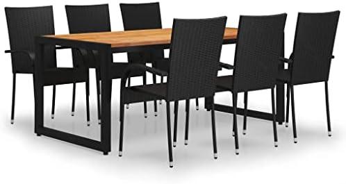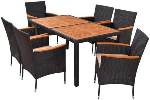 vidaXL Patio Dining Set 7‍ Piece Garden Outdoor​ Balcony Backyard Terrace⁣ Dinner Dinette Table and Chair Home Decor Furniture Set Black
