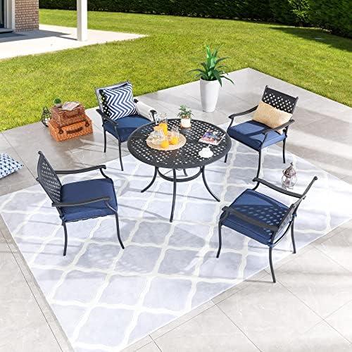 When considering this dining set, there are distinct advantages and a few drawbacks. Pros include the lightweight but sturdy material, making it easy to move, and the inclusion of four cushioned chairs that enhance comfort during long gatherings. The set’s simple assembly process—taking about 30 minutes—also stands out as a positive feature. On the downside, while the cushions are removable, they may require periodic washing to maintain cleanliness. Additionally, although the aluminum is weather-resistant, it’s advisable to store the set during harsh weather conditions to prolong its life.