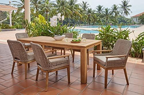 While the dining set presents many advantages, there are a few drawbacks to consider. The premium teak wood may require occasional maintenance to preserve its natural beauty and prevent weathering over time. Additionally, the set’s price point may be higher than other outdoor furniture options; however, its long-lasting quality and aesthetic appeal often justify the investment. If you desire a stylish and functional patio dining solution, this collection is well worth the consideration.