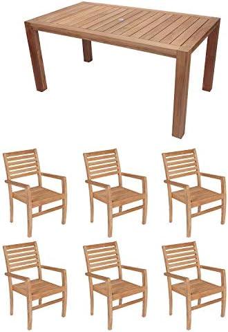 7-Piece Teak Patio Dining Set with 63-Inch Rectangular Table & Avant Stacking Chairs (P86WO)