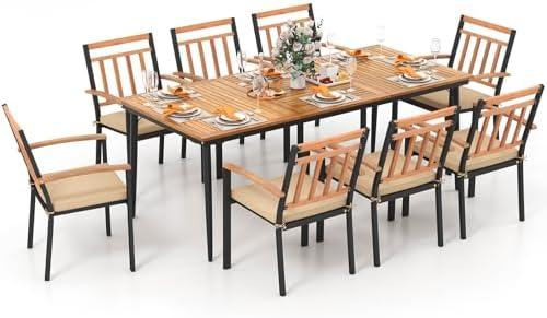 Chic Outdoor Dining Set with Acacia Wood and Metal Frame