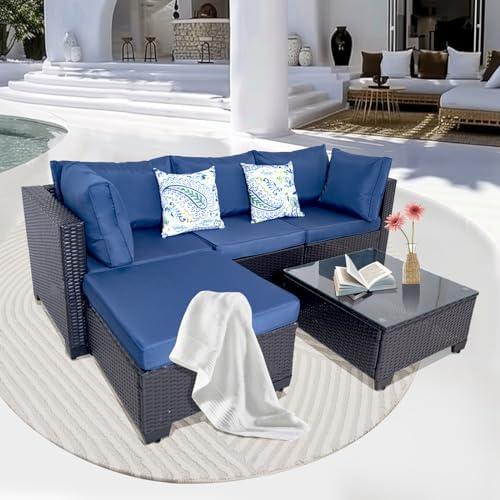 5-Piece Outdoor Sectional Sofa Set with Ottoman, Light Blue