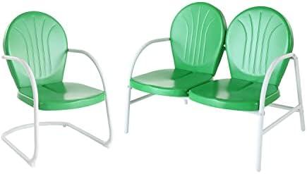 This conversation set brings a nostalgic charm to any outdoor area with its striking grasshopper green color, creating a visually appealing focal point for patios, balconies, or gardens. With compact dimensions of 41.13 inches in width, 29.5 inches in depth, and 34.5 inches in height, it fits comfortably into smaller spaces, making it an excellent addition for those who seek functionality without sacrificing style. The sturdy, powder-coated steel frame assures durability and resistance against rust and corrosion, effectively withstanding various weather conditions. This modern and vibrant seating solution is designed to enhance relaxation and leisure moments outdoors.