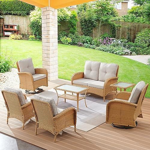 Stylish 7-Piece Wicker Swivel Rocker Set for Outdoor Use
