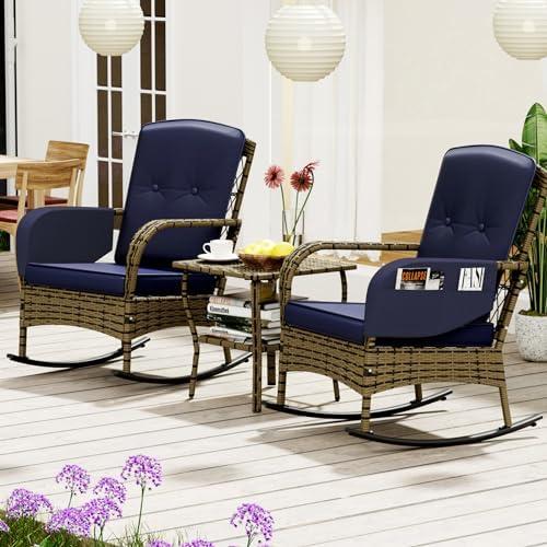 While this rocking chair and coffee table set offers many benefits, there are a few drawbacks to consider. The overall weight of the chairs may make them less portable for those who prefer rearranging their outdoor space frequently. Additionally, the cushions, while thick, might require regular maintenance to keep them looking pristine, especially in harsh weather conditions. Nonetheless, the soothing rocking motion and chic design make it a worthwhile choice for anyone looking to create a comfortable and stylish outdoor retreat.