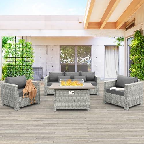 Chic and Versatile Outdoor Wicker Furniture Set with Fire Pit