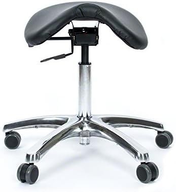 This unique ergonomic seating solution features a saddle seat shape designed to promote proper posture, allowing users to sit comfortably while ensuring their legs hang naturally, which reduces pressure on the backs of the thighs. Built with high-quality steel construction, it supports users weighing up to 250 lbs. The gas lift height adjustability provides flexibility in positioning the seat from 21” to 28”, catering to different user heights and preferences. The easy-clean pleather material allows for effortless maintenance, making it ideal for both home and office environments. The polished aluminum five-point base with twin-disc nylon casters ensures smooth mobility, distributing weight evenly for a stable sitting experience.