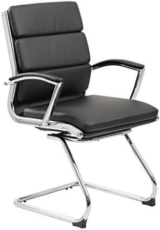This well-designed chair serves as a stylish and functional addition to any workspace. With its sleek black CaressoftPlus vinyl upholstery, it offers a sophisticated appearance while ensuring comfort during long hours of use. The durable construction is suitable for both home offices and commercial environments, accommodating users up to 250 pounds. Measuring 23″W X 23″D X 39″H, it incorporates a modern chrome cantilever base, allowing for ample legroom—making it a great fit even in limited spaces. The chair’s metal chrome-plated arms are designed with soft pads, enhancing comfort and support.