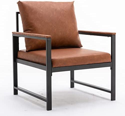 Chic Faux Leather Armchair with Metal Frame for Any Decor