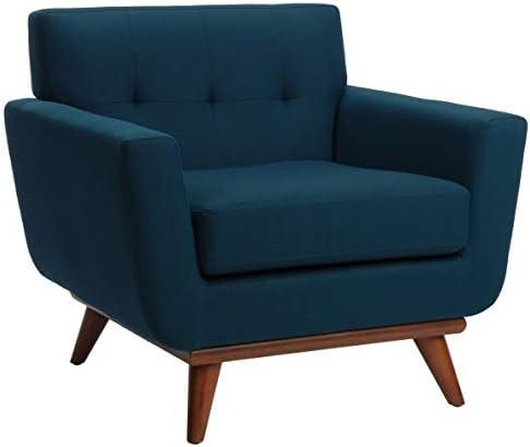 This armchair showcases a beautiful dark teal linen upholstery that adds a pop of color while offering a sophisticated touch to any room. Its tufted design emphasizes the elegant retro aesthetic, making it an ideal choice for those looking to add a stylish accent to their living space. With its clean lines and shapely wooden legs finished in walnut, this chair not only serves as a comfy spot for reading or relaxing but also stands as a captivating focal point in your home decor.