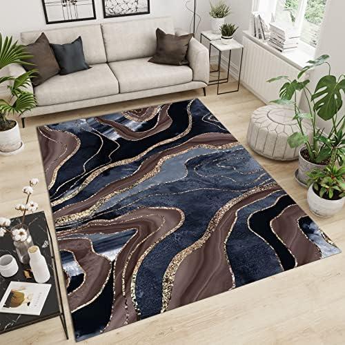 This attractive area rug features a unique and fashionable design with a delightful blend of black, blue, and brown colors. Its modern abstract aesthetic serves as an elegant decor piece for any living space or bedroom. The surface is made of soft flannel short velvet, providing a rich and comfortable touch for your feet. The high-density sponge in the middle layer ensures good support, while the latex anti-slip pad at the back effectively prevents any unwanted sliding, offering safety for families with children and pets. With a size of 5ft x 7ft, it fits well in various indoor spaces, including dormitories and children’s game rooms.