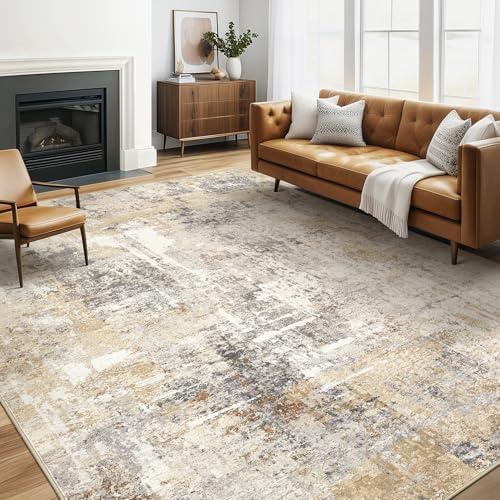 Experience the ultimate in comfort with this large area rug that features a faux wool construction, offering a luxuriously soft and cozy feel underfoot. The non-shedding low pile ensures lasting durability, making it suitable for various settings including the living room, bedroom, dining room, nursery, and office. Its stunning abstract design infuses a modern touch into your space, transforming ordinary rooms into stylish areas. With a thoughtful blend of grey and gold tones, it complements different decor styles while maintaining an elegant and trendy aesthetic.