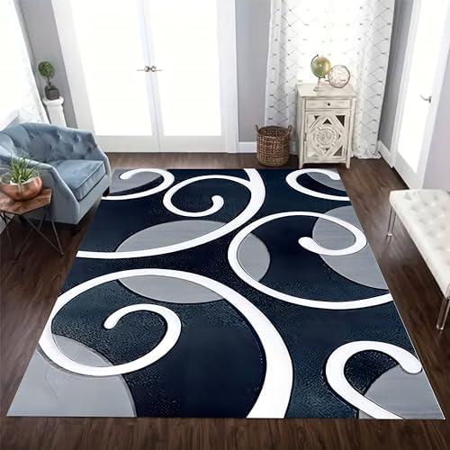 This modern area rug showcases an intricate geometric pattern that beautifully combines waves, swirls, and circles, making it an eye-catching centerpiece for any room. It features a blend of vibrant colors like gray and blue that can seamlessly enhance both bold and neutral color schemes. Constructed from premium-grade acrylic, it provides a soft, luxurious feel underfoot while being durable enough for everyday use. In addition to its aesthetic appeal, the rug also serves practical purposes by acting as a buffer against sharp objects that may fall, thereby protecting your flooring from wear and tear.