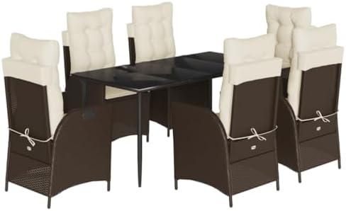 While this outdoor set boasts impressive durability from its powder-coated steel frame and waterproof PE rattan, it also shines in usability with its easy-to-clean surfaces. Pros include its stylish aesthetic, robust construction, and comfortable seating. However, potential cons may include its weight, as the overall product weighs 158 lbs, making relocation a bit challenging. Additionally, the assembly process could prove tricky without assistance. Regardless, for a sophisticated touch to your outdoor dining experience, this set is a stunning choice.