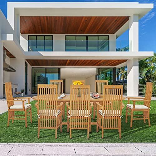9 Piece Teak Wood West Palm Outdoor Patio Dining Set Including Oval Extension Table & 8 Arm Chairs