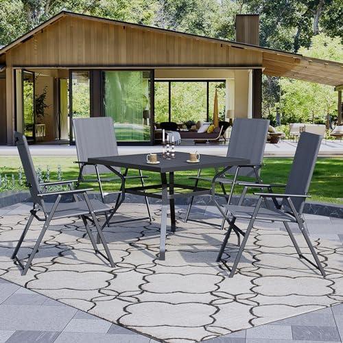 This outdoor dining arrangement is designed to enhance your relaxation experience while providing a practical solution for meals al fresco. The set features four breathable Textilene chairs, known for their durability and weather resistance, comfortably supporting up to 350 pounds each. The 42″ square table is not only stylish but equipped with a 1.57″ umbrella hole, making it easy to enjoy shade during those hot summer days. Plus, the use of E-Coating and Powder-Coating ensures that the furniture can withstand the elements, guaranteeing a long-lasting addition to your garden, lawn, or poolside area.