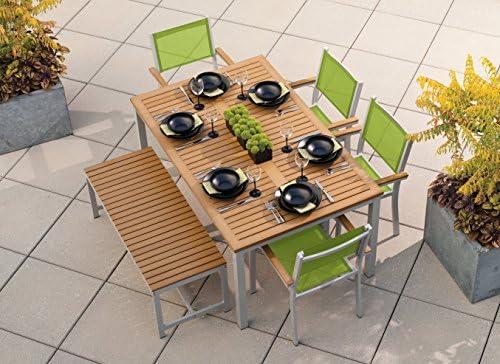 Travira 6 Piece Powder Costed Aluminum with Natural Tekwood Sling Dining Set, Go Green