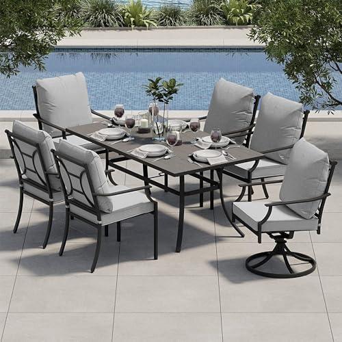 Seven-Piece Outdoor Dining Set with Swivel Chairs and Faux Woodgrain Table