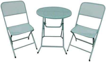 This elegantly designed outdoor set includes a table and two chairs, making it perfect for small spaces like patios, balconies, or gardens. With a sleek blue powder-coated finish, the durable steel frames not only add a contemporary flair to your outdoor decor but also ensure long-lasting performance. The breathable steel mesh construction allows for comfortable seating while maintaining a modern aesthetic that complements various outdoor styles.