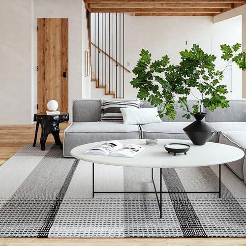 Rugs USA x Emily Henderson Portland Plaid Wool Area Rug, 10×14, Grey