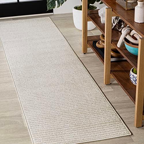 The sleek aesthetic of this runner rug offers a perfect blend of minimalist design and functionality, making it an ideal addition to any space, including bedrooms, kitchens, and living rooms. Featuring a sophisticated two-tone color scheme of ivory and cream, this rug enhances modern interiors with its high-low pile structure that reflects light beautifully and adds a touch of luxury. Its versatile design ensures it works just as well in outdoor settings like porches or decks, proving to be a practical choice for high-traffic areas.