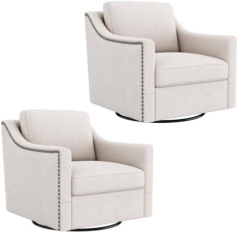 When considering the advantages, the stylish antique brass nailhead trim adds a modern touch, complemented by the neutral beige color that seamlessly blends with various decor styles. The detachable cushion enhances the ease of cleaning, while the robust construction supports comfortable seating for hours. However, potential downsides include the need for sufficient space to accommodate the swivel function and the requirement for regular maintenance to keep the linen fabric looking its best. these accent chairs are a great addition to your living room, bedroom, or office, providing both comfort and style.