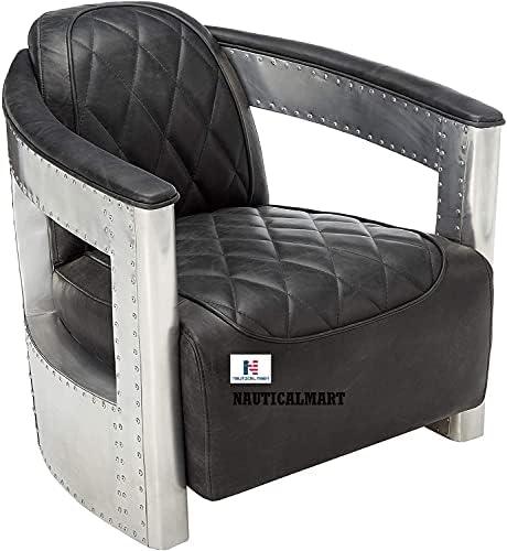 NauticalMart Modern Industrial Metal and Leather Aviation Accent Arm Chair Living Room Furniture