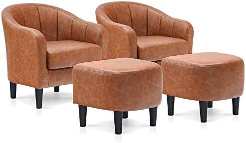 This barrel armchair set, featuring elegant faux leather upholstery, seamlessly combines aesthetic charm with practical functionality. Designed for small spaces, it’s perfect for living rooms, corners, or even offices. The high-quality sponge filling provides an ideal balance of support and softness, making it a comfortable spot to unwind or entertain guests. Additionally, the movable ottoman can serve multiple purposes; whether it’s a footrest or a makeshift coffee table, it adapts to your needs, adding versatility to your decor.