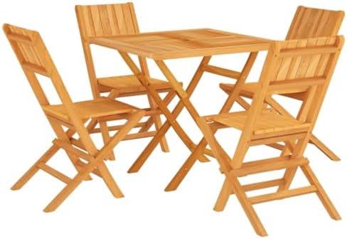 5-Piece Outdoor Dining Set with Teak Wood Folding Chairs