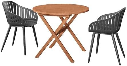 This three-piece set seamlessly combines functionality and modern design, making it a delightful addition to any patio or backyard. Crafted with solid eucalyptus wood and complemented by high-quality Duresin chairs, this ensemble is not just visually appealing but also durable. The table measures 35 inches wide and 29 inches high, perfectly suited for hosting family and friends. The armchairs are designed for comfort, with 21.5-inch dimensions and seat height that offers an inviting relaxation spot. Its sturdy materials ensure it can withstand the test of time, allowing you to enjoy your outdoor setting year-round, regardless of weather conditions.