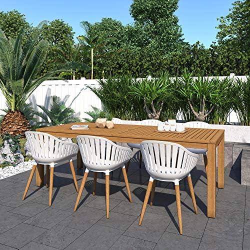 This elegant dining set is constructed with premium top grade teak hardwoods which feature minimal knots and an appealing natural golden hue. The chairs are designed for comfort, measuring 24 inches wide, 21 inches deep, and 36 inches high, with a seat height of 17.5 inches when cushioned. The accompanying rectangular table is spacious, with dimensions of 72 inches wide and 42 inches deep, providing plenty of room for dining or entertaining. The durable heavy-duty fully welded frame ensures stability and longevity, while the powder-coated aluminum adds a stylish and rust-resistant finish. Assembly is straightforward, allowing you to set it up in just a few easy steps, and the curbside delivery guarantees that it arrives safely at your home.