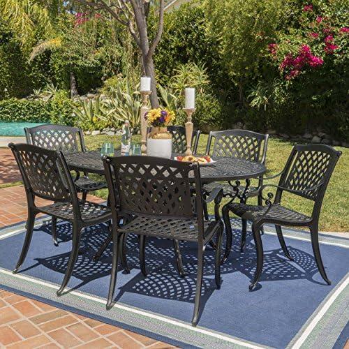 While this dining set provides numerous advantages, there are a few considerations to keep in mind. Although the cast aluminum is rust-free and durable, it may still require routine maintenance to maintain its appearance over time. Additionally, the size might be a limitation for smaller patios or balconies where space is constrained. this set is an excellent choice for those looking to elevate their outdoor dining experience, combining comfort and style seamlessly.