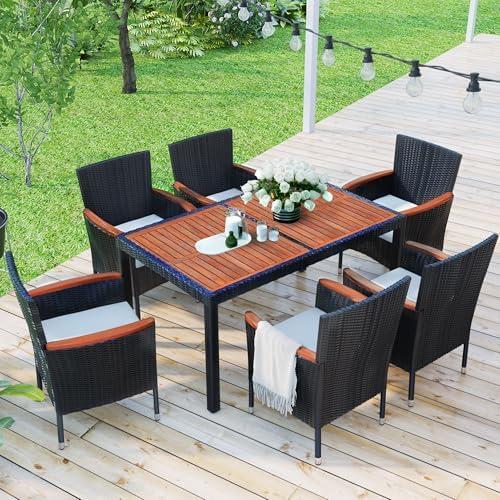 7-Piece Modern Outdoor Dining Set with Cushions and Wicker Rattan