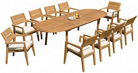 Teak Dining Set with Double Extension and Stacking Chairs – 117 inches