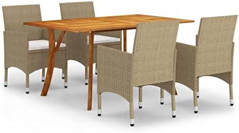 This 5-piece dining set is perfect for those looking to enhance their outdoor space with both style and comfort. The sturdy table is crafted from solid acacia wood with an oil-treated surface, making it easy to maintain and clean. Its curved legs not only provide stability but also contribute to its elegant design. The dining chairs feature a robust weather-resistant PE rattan woven over a strong steel frame, ensuring durability and ease of cleaning. For added comfort, the thick padded cushions make it a cozy spot for dining al fresco.