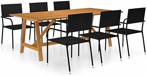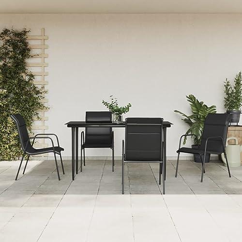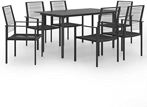 7 Piece Garden Dining Set Black,Garden Dining Table,Table for Garden,Metal Garden Furniture