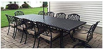 While this dining ensemble boasts impressive features, it does have some considerations to keep in mind. Pros include the rust-free cast aluminum construction, ample seating capacity, and beautiful design that complements various outdoor spaces. However, potential cons might be the weight of the table at 160 lbs, which may make relocation a challenge, and the cushions, while free, may require regular maintenance to keep them looking pristine. this set combines functional beauty with durability, making it a solid choice for any patio.