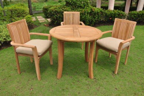 New 4 Pc Luxurious Grade-A Teak Dining Set -36″ Round Table and 3 Lua Stacking Arm Chairs #WHDSLU2