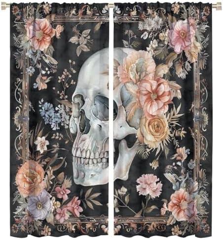 Stylish Skull Floral Window Drapes Perfect for Any Room