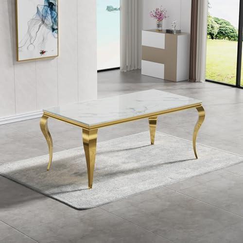 70″‍ Faux​ Marble Dining Table for 6-8, ⁤Modern Luxury⁤ Rectangular ⁤Dining⁣ Room⁣ Table with S-Shaped Stainless ‌Steel‍ Legs, Large Dinner Table for Kitchen Dining Room (Gold)